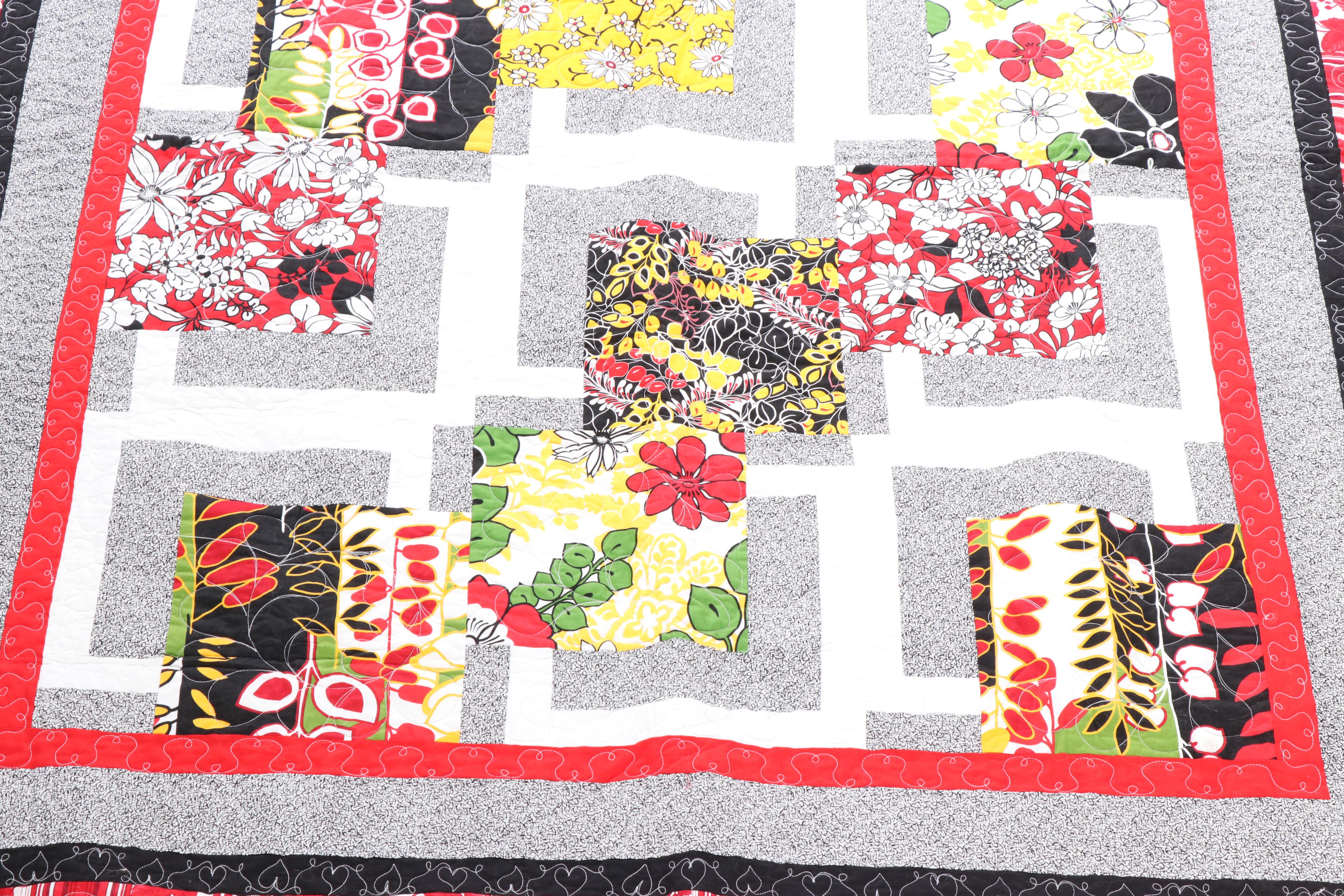 HandPieced Twin Size Patchwork Quilt, Contemporary EBTH